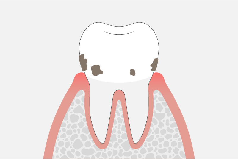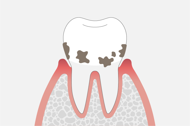 歯肉炎、歯周炎とも呼ばれています。歯垢(プラーク)は時間が経つと歯磨きでは取り除くことができない歯石になります。歯石自体は歯周病の原因ではありませんが、歯磨きでは除去できないため、周囲のプラークの除去を困難にします。専門的な治療が必要になるケースがあります。